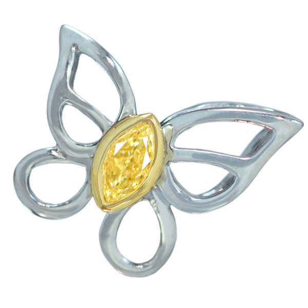 【代行販売】K18/PT950 イエローダイヤモンド 0.06ct ペンダントトップ マーキス バタフライ