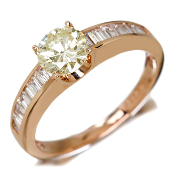 K18PG 0.700ct LIGHT YELLOW SI-2 イエローダイヤモンド リング 0.34ctダイヤモンド※中央宝石研究所ソーティングシート付き