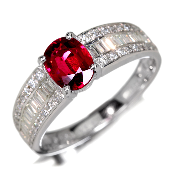 【非加熱ルビー】PT900 1.11ct 非加熱ルビー リング 0.4ct ダイヤモンド ※GIA REPORT付き