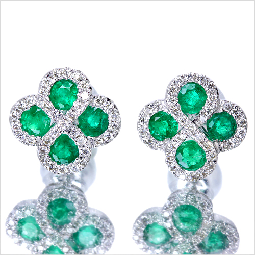 エメラルドピアス ホワイトゴールド ダイヤモンド クローバーモチーフ