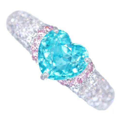 《100年引き継がれるジュエリーを- ハンドメイドジュエリー展》【HANDMADE】PT950 パライバトルマリン 1.49ct ピンクダイヤモンド 0.13ct ダイヤモンド 0.753ct リング ハートシェイプ パヴェリング