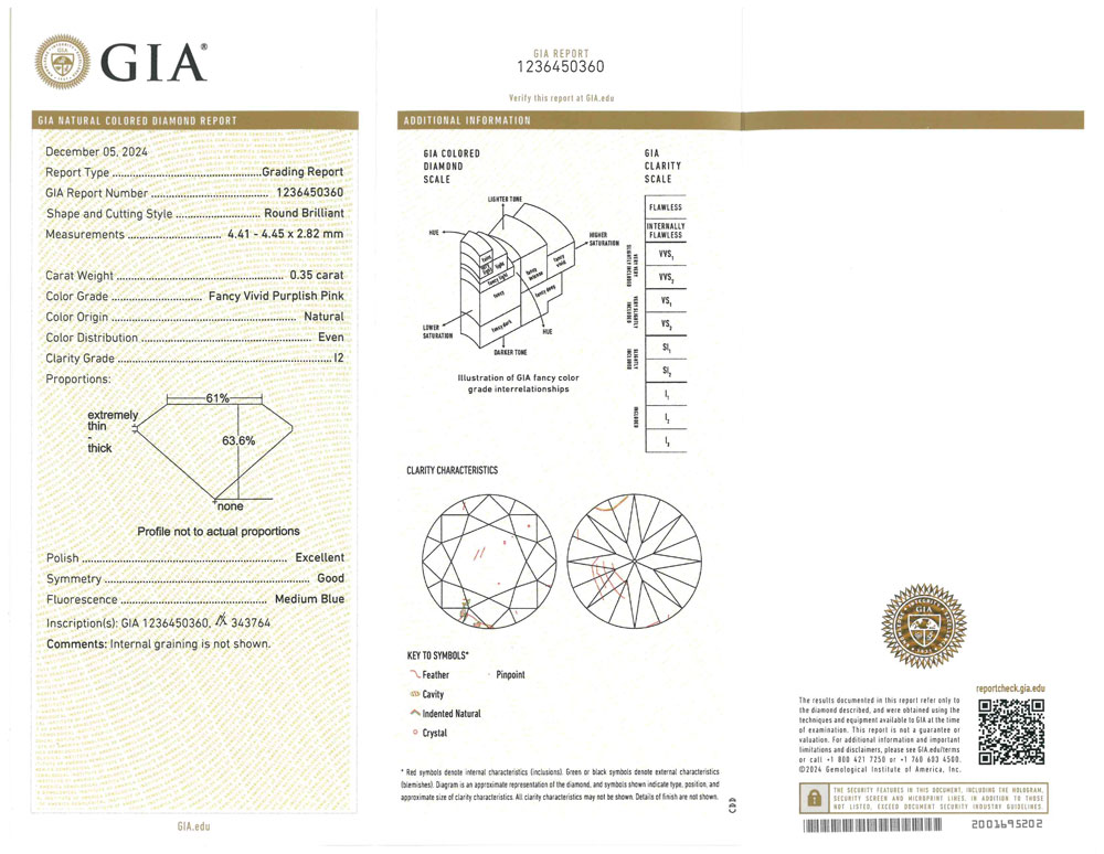 TOP QUALITYピンクダイヤモンド 0.35ct FANCY VIVID PURPLISH PINK I2 ルース ラウンドブリリアントカット アーガイルNo刻印有 [GIA]