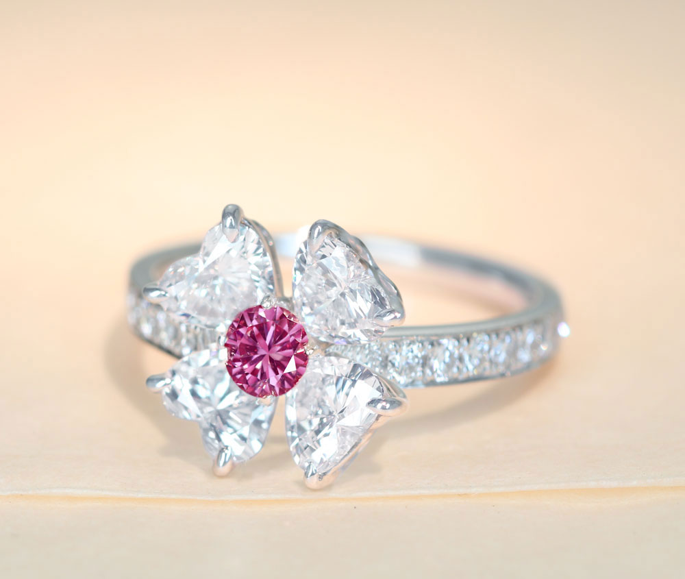 《100年引き継がれるジュエリーを ハンドメイドジュエリー展》完売! HANDMADE】PT950 K18PG ピンクダイヤモンド FANCY INTENSE PINK SI-1 ダイヤモンド 0.766ct リングハートシェイプ[CGL]