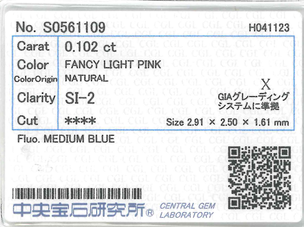 【代行販売】ピンクダイヤモンド 0.102ct FANCY LIGHT PINK SI2 ルース[中央宝石研究所]