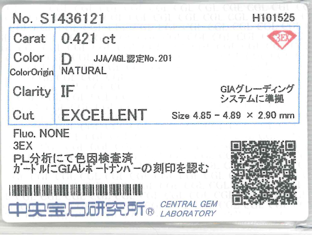 Dカラー、Internally Flawless。