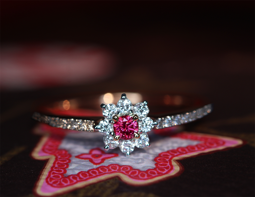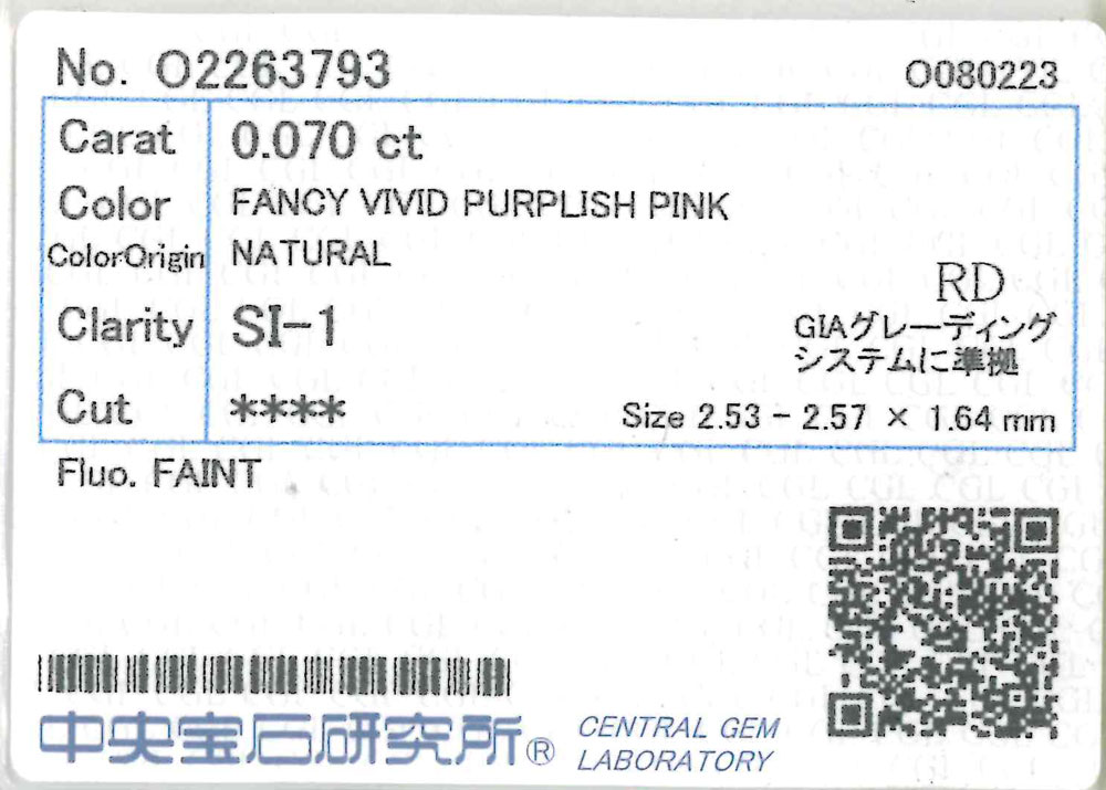 《100年引き継がれるジュエリーを- ハンドメイドジュエリー展》特別価格!【HANDMADE】PT950/K18PG ピンクダイヤモンド FANCY VIVID PURPLISH PINK SI1 0.070ct ダイヤモンド 0.130ct リング [中央宝石研究所]