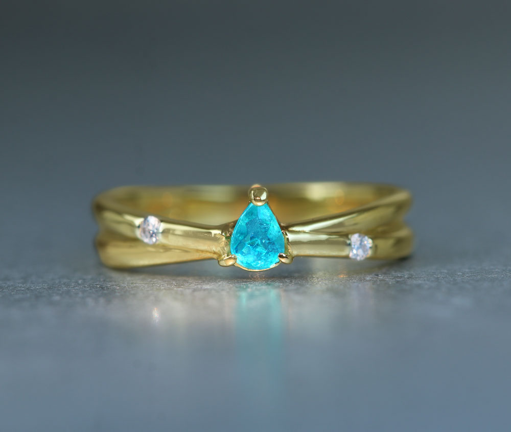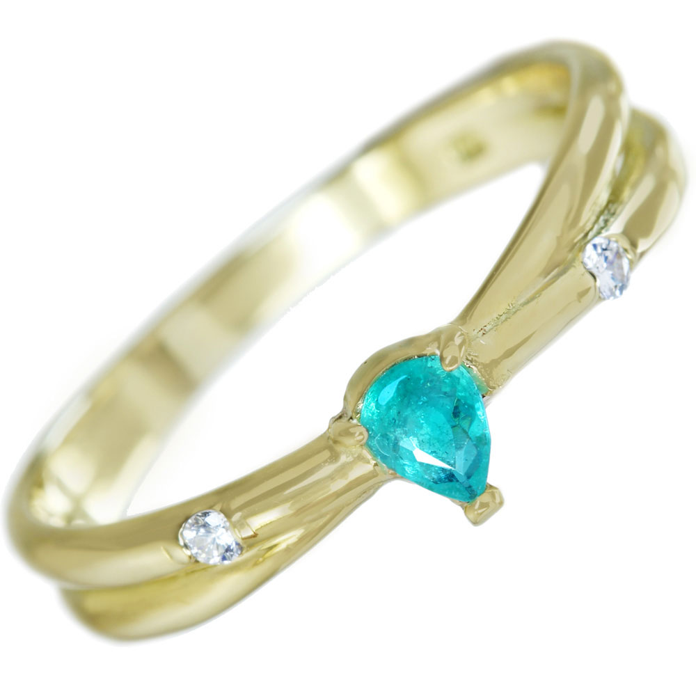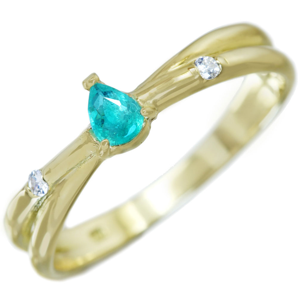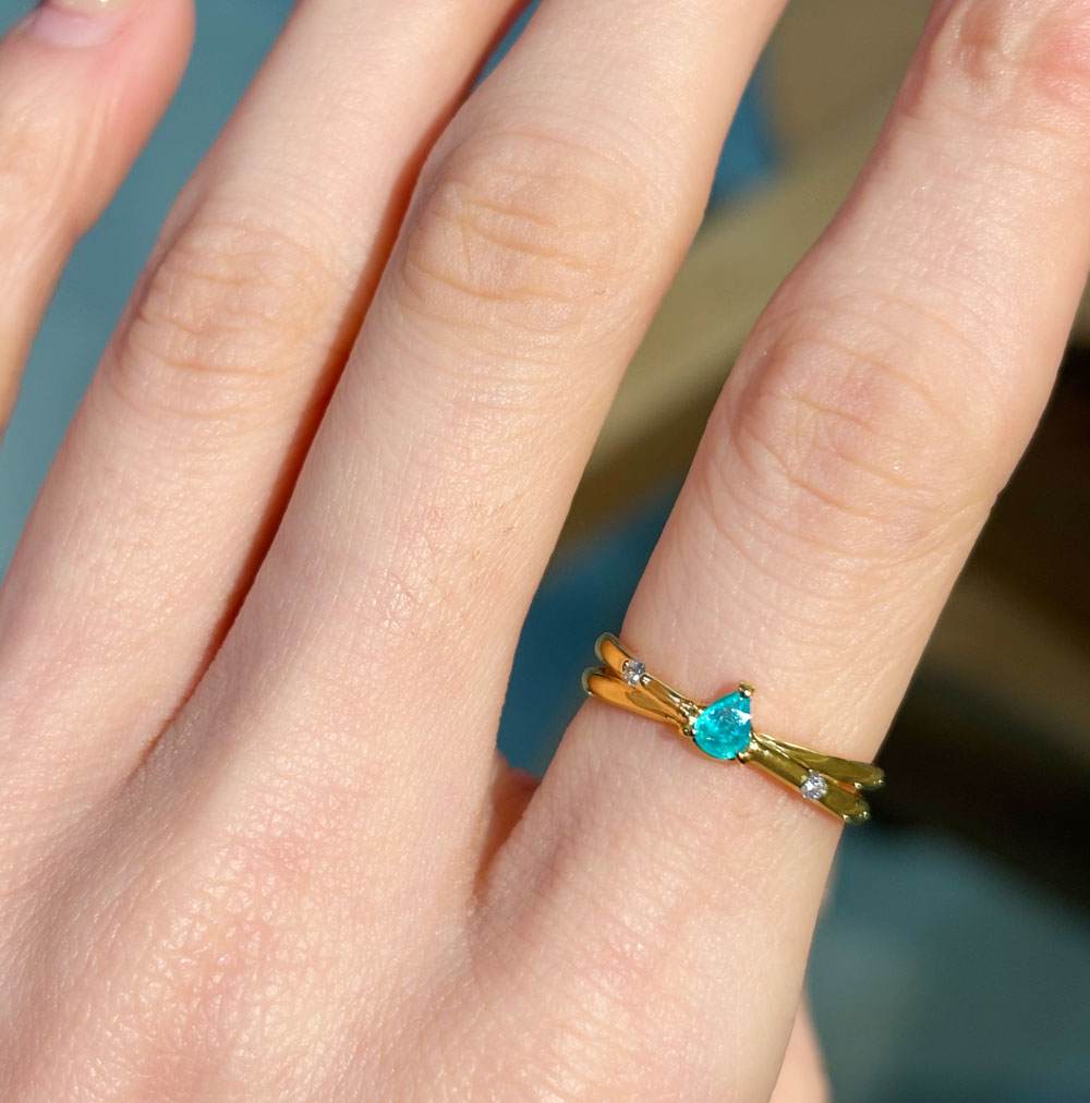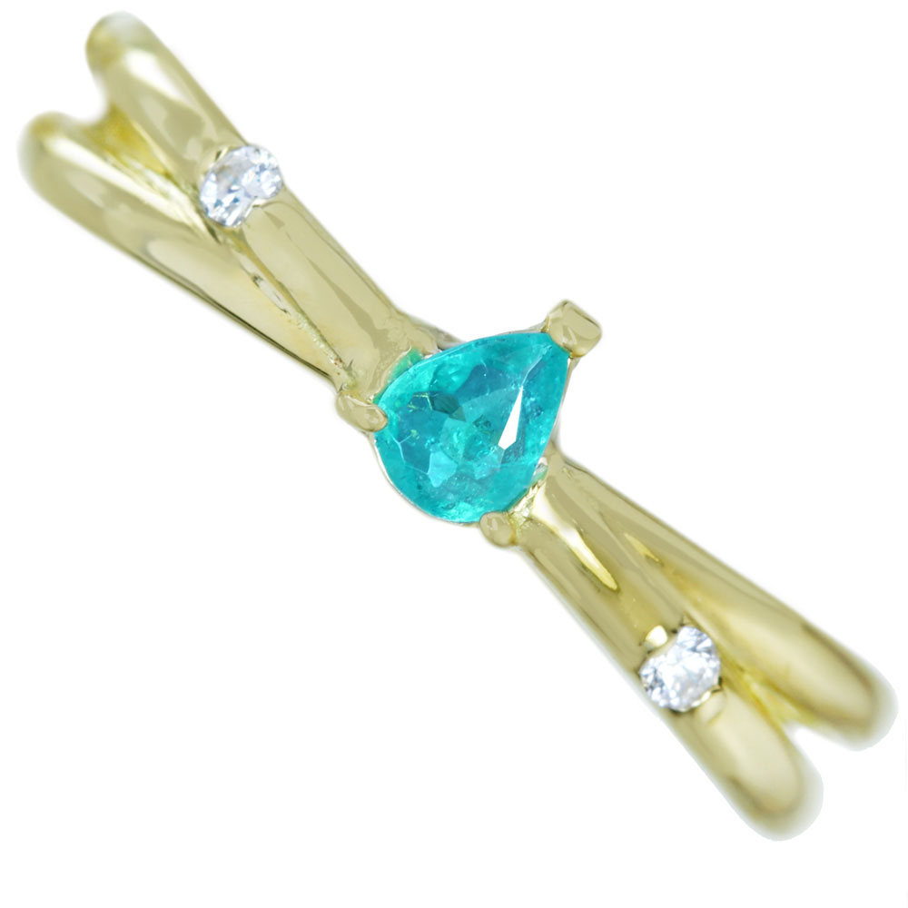 【代行販売】K18YG ブラジル産パライバトルマリン 0.119ct ダイヤモンド 0.03ct リング ペアシェイプ
