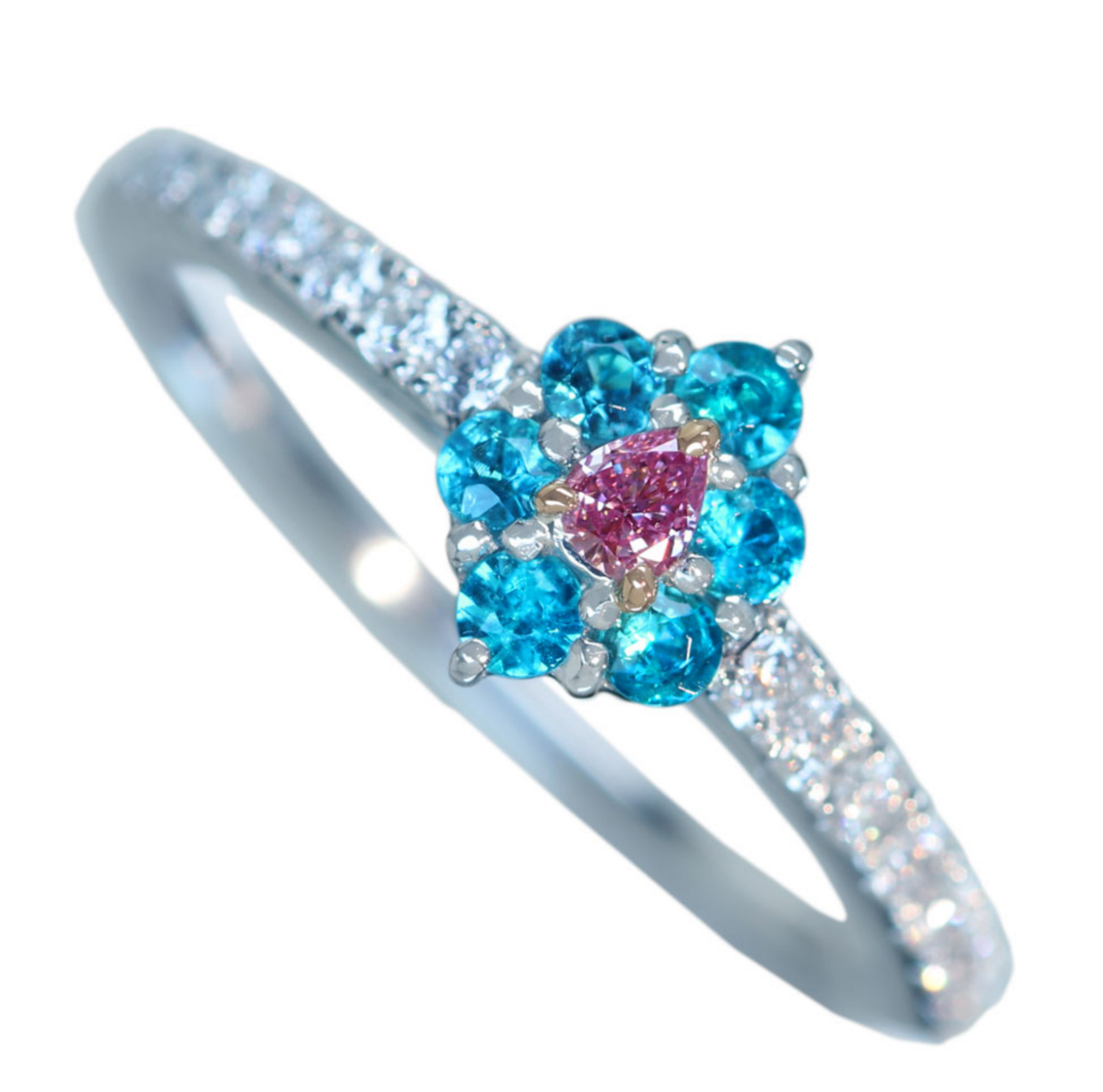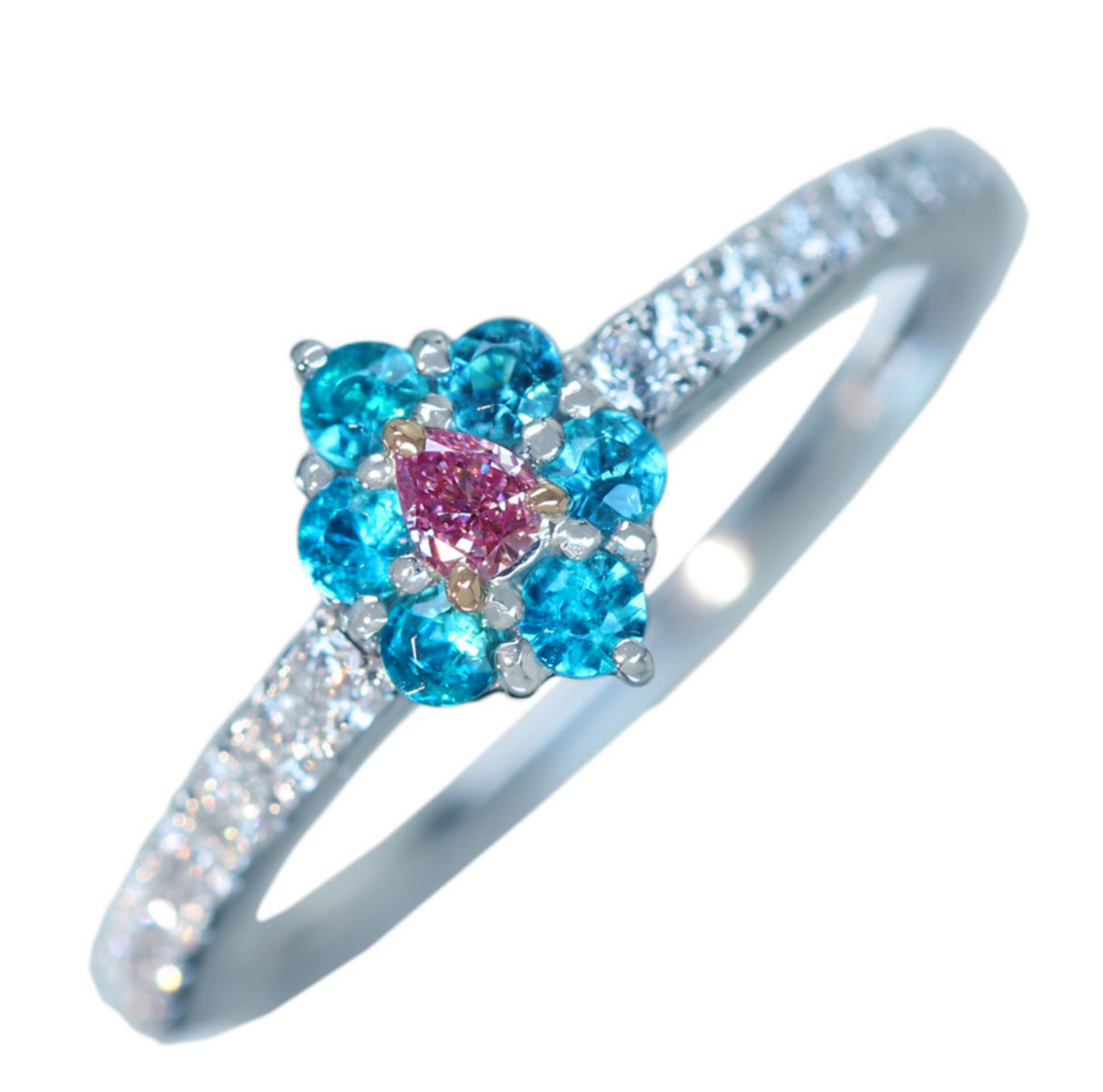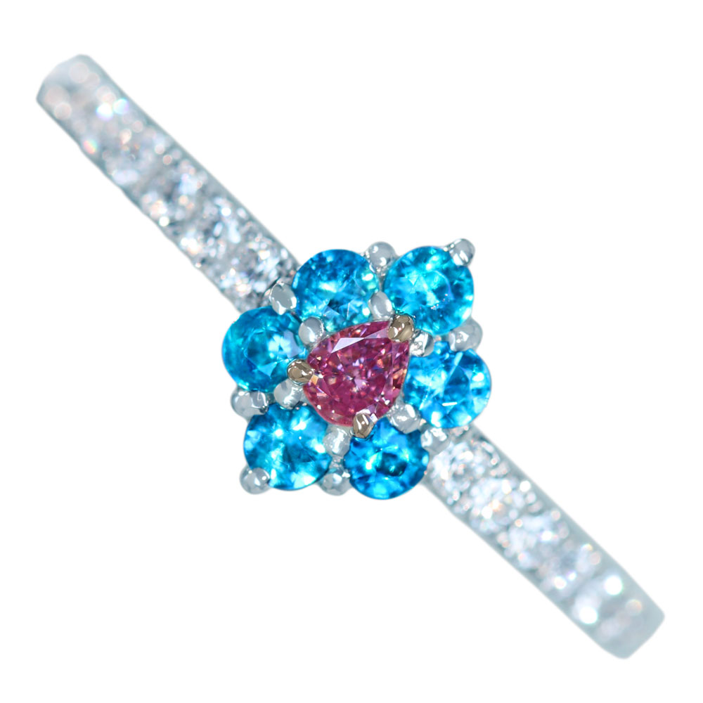 《100年引き継がれるジュエリーを- ハンドメイドジュエリー展》【HANDMADE】PT950/K18PG ピンクダイヤモンド FANCY INTENSE PURPLISH PINK ブラジル産パライバトルマリン 0.18ct ダイヤモンド 0.178ct リング[中央宝石研究所]