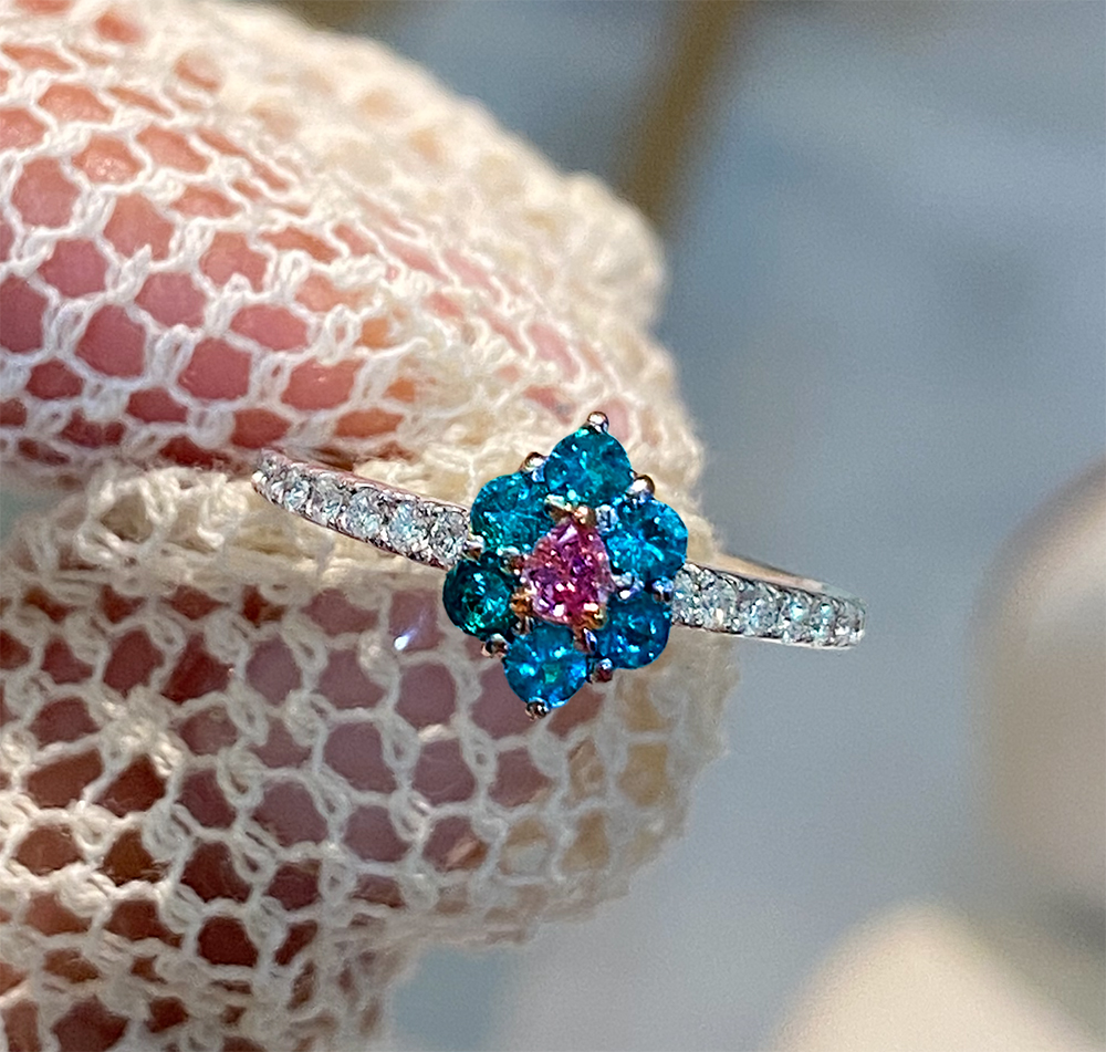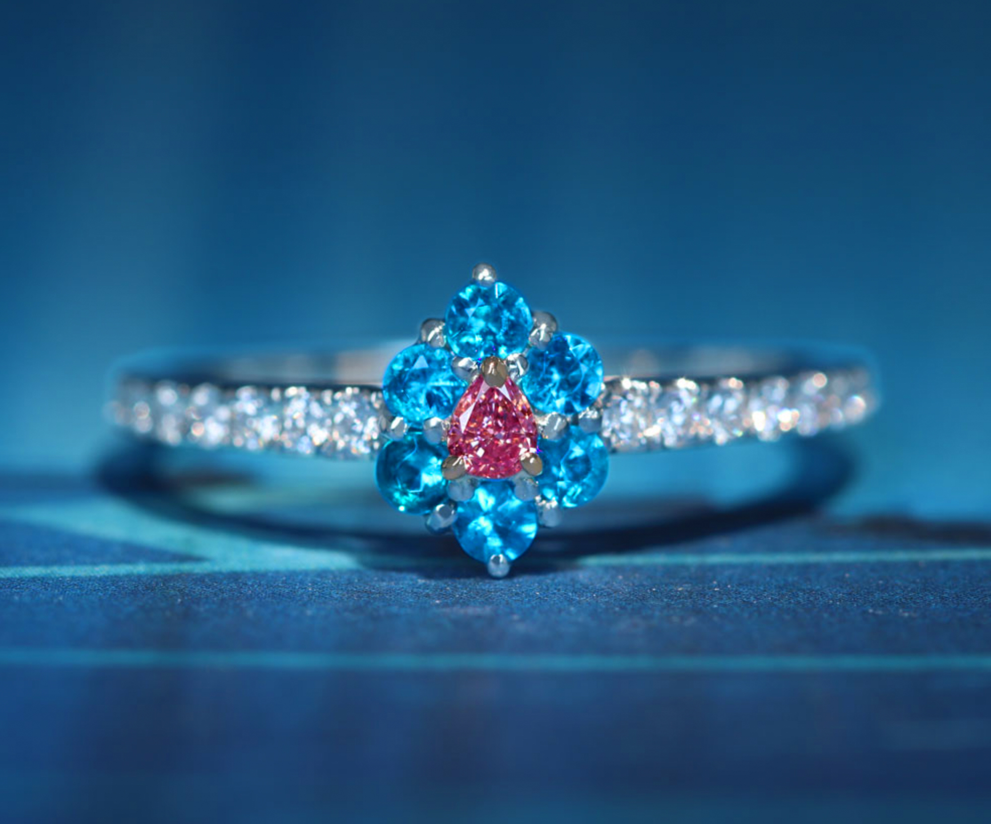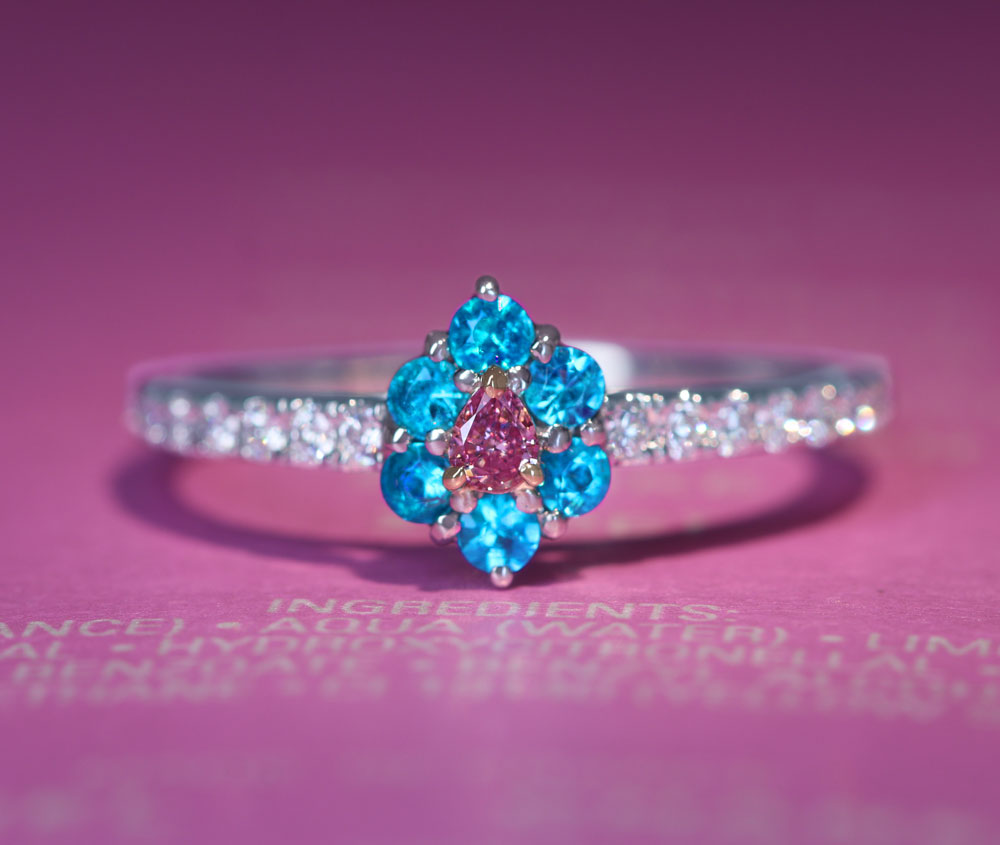 《100年引き継がれるジュエリーを- ハンドメイドジュエリー展》【HANDMADE】PT950/K18PG ピンクダイヤモンド FANCY INTENSE PURPLISH PINK ブラジル産パライバトルマリン 0.18ct ダイヤモンド 0.178ct リング[中央宝石研究所]