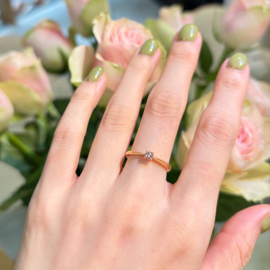 MATURE PINK【HANDMADE】K18PG ピンクダイヤモンド 0.146ct VERY LIGHT BROWNISH PINK SI1 リング