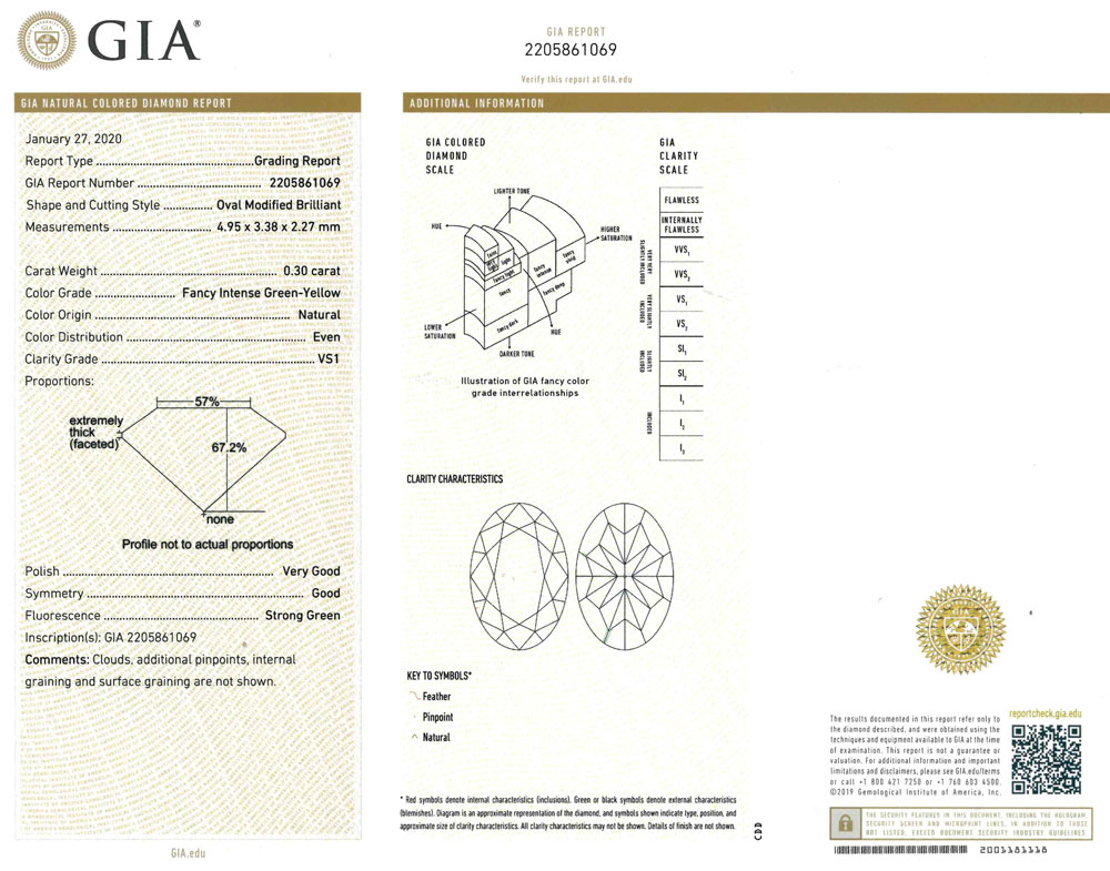 FANCY INTENSE GREEN-YELLOW VS1 0.30ct