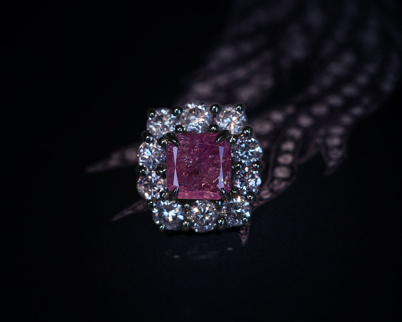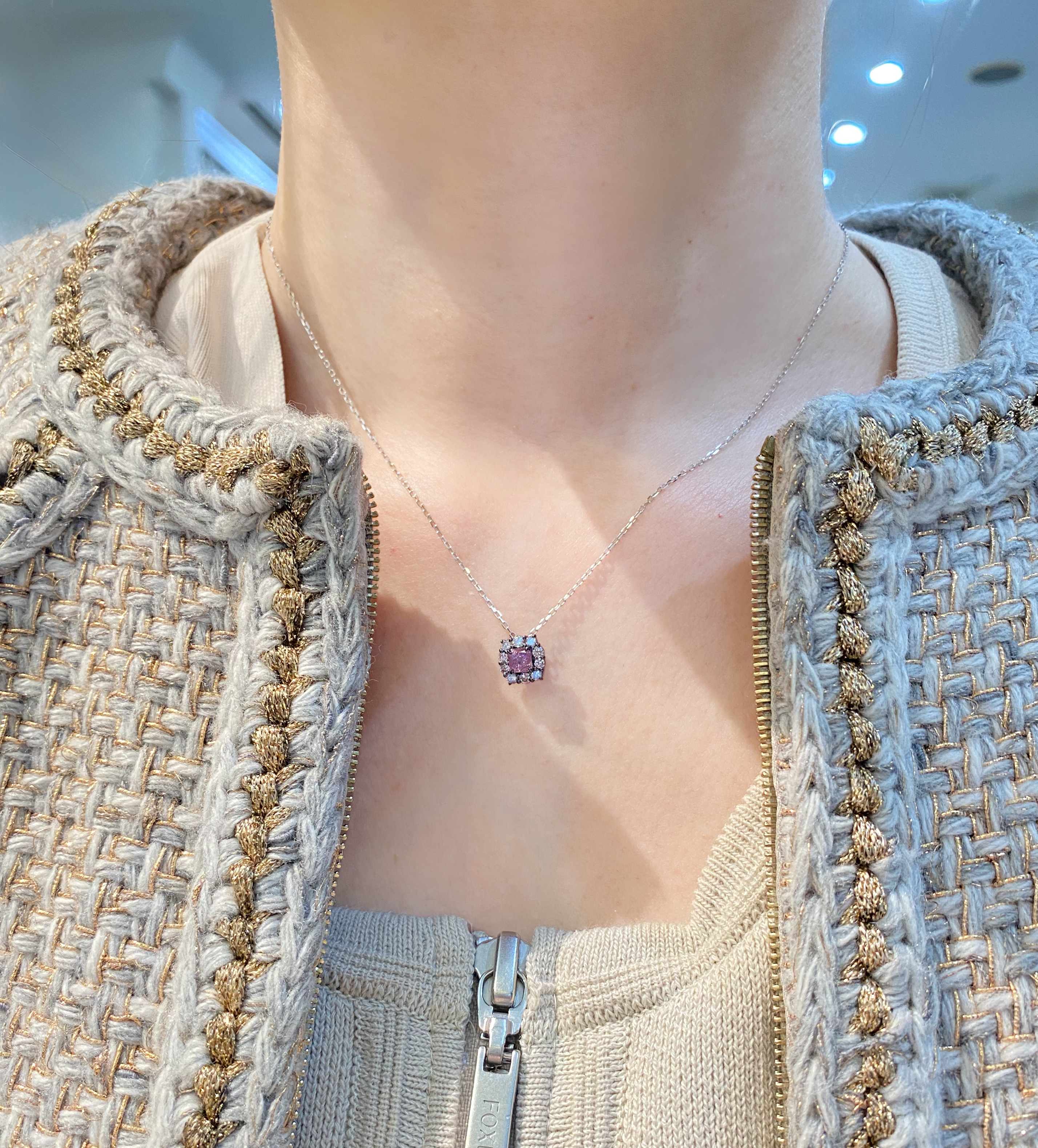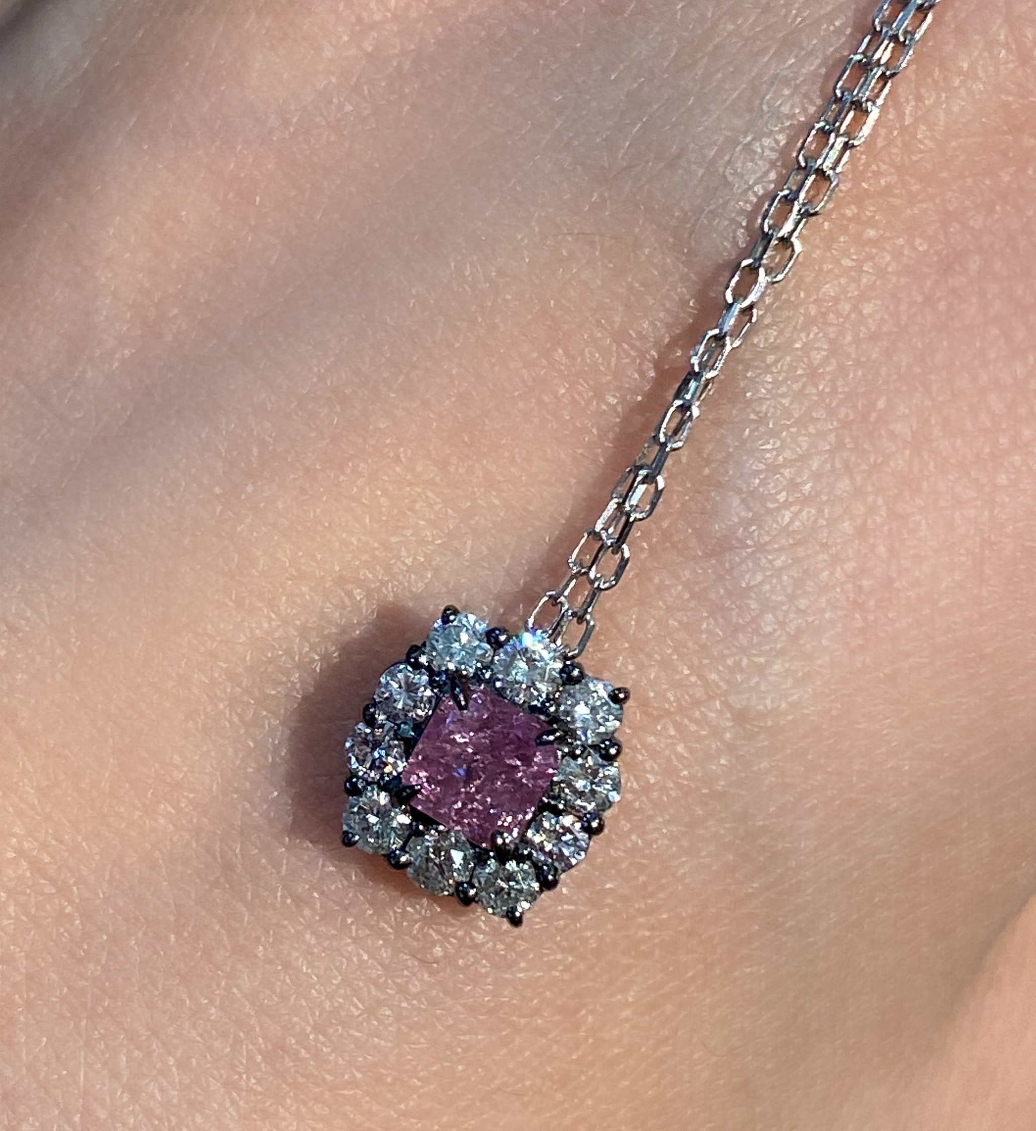 【HANDMADE】プラチナ950 天然ピンクダイヤモンド 0.365ct ダイヤモンド 0.29ct ペンダントトップ 中央宝石鑑別所付