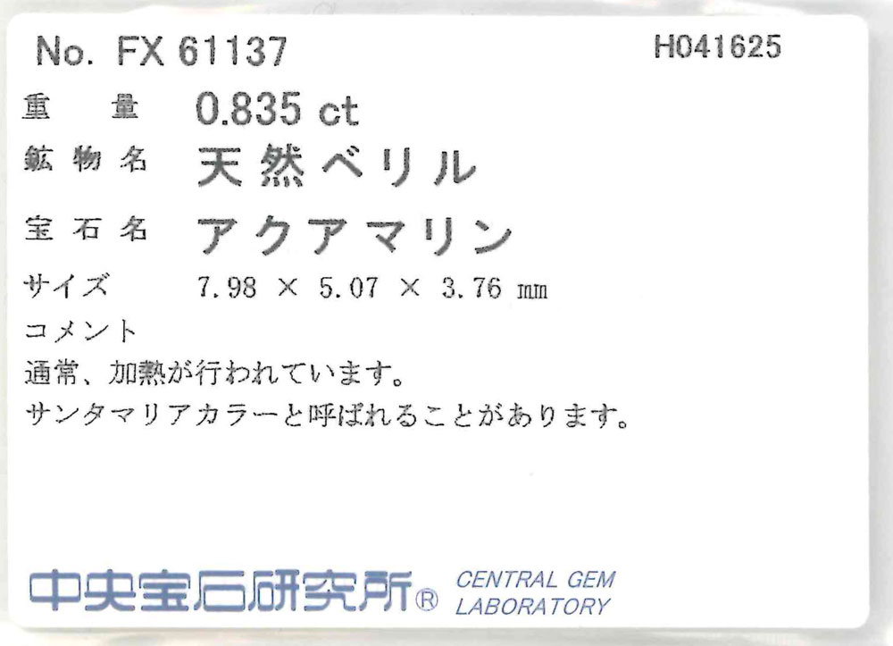 サンタマリア アクアマリン 0.835t
