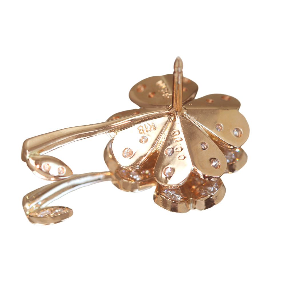 【HANDMADE】K18PG ピンクダイヤモンド 0.100ct LIGHT PURPLISH PINK VS2 ダイヤモンド 0.345ct ピンブローチ フラワー[中央宝石研究所]