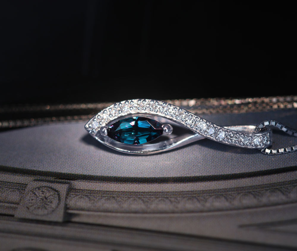 湧き上がる鋭い煌めきが溢れ出すアレキサンドライトを