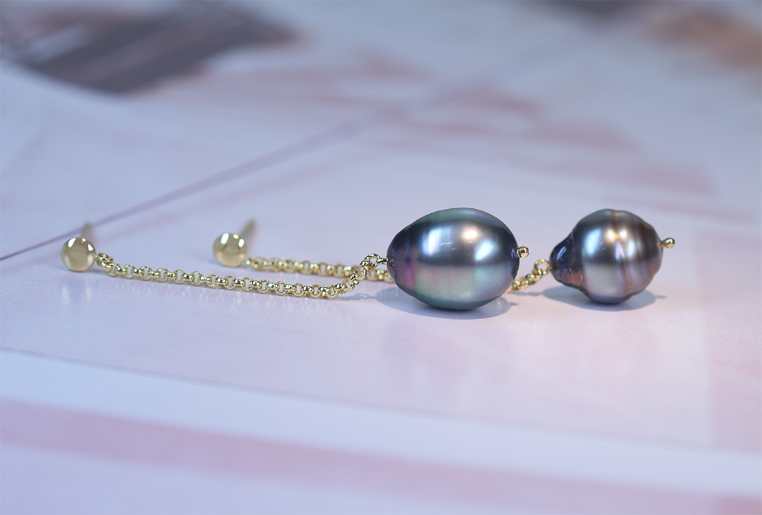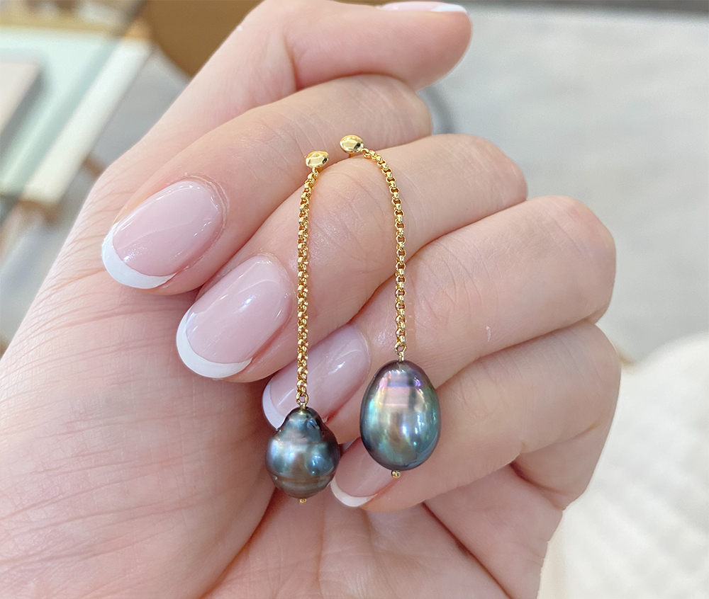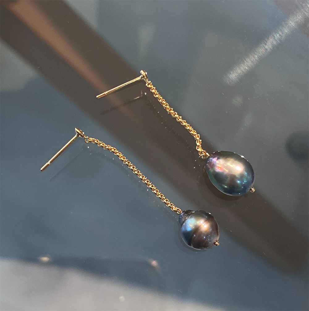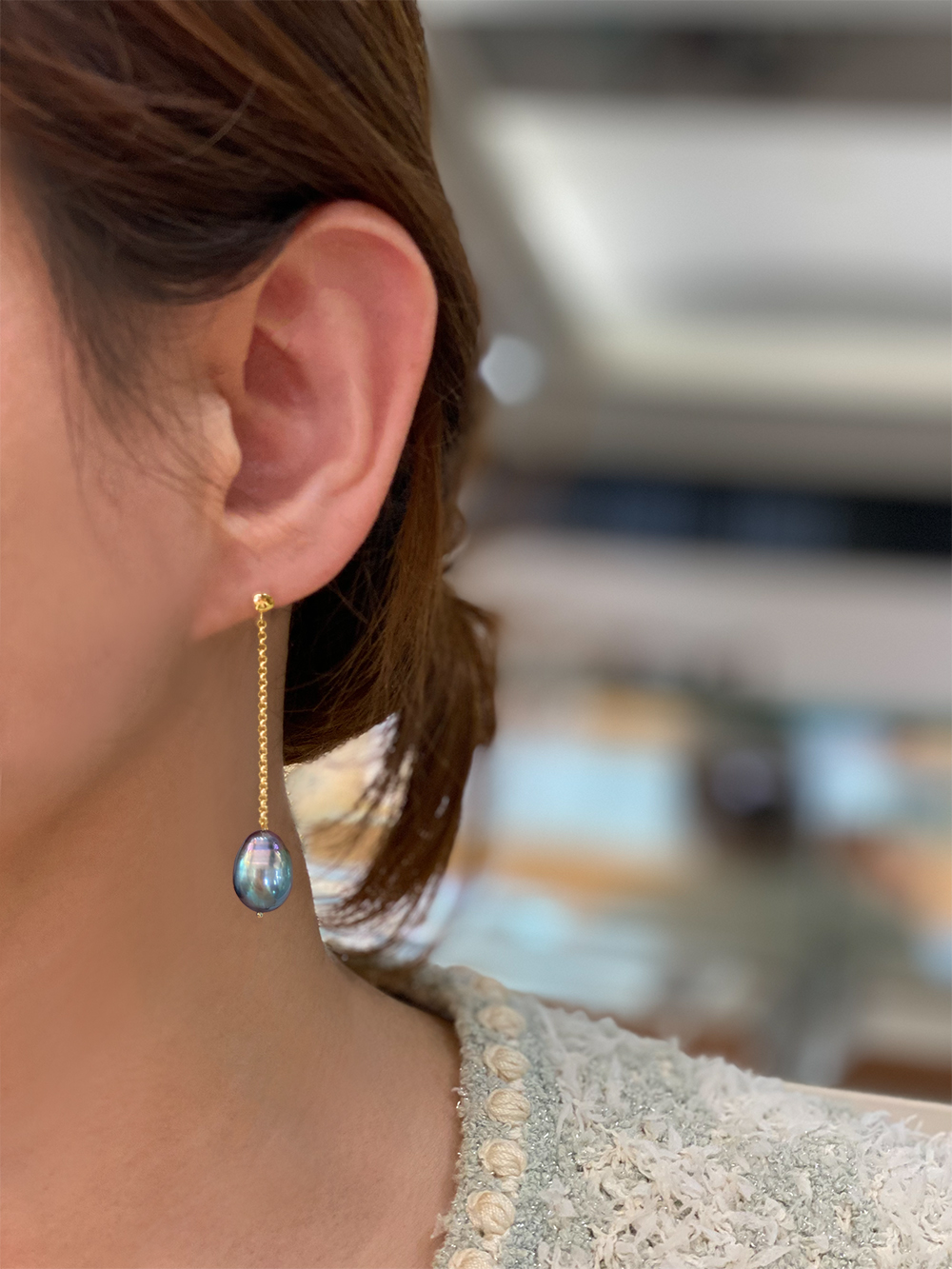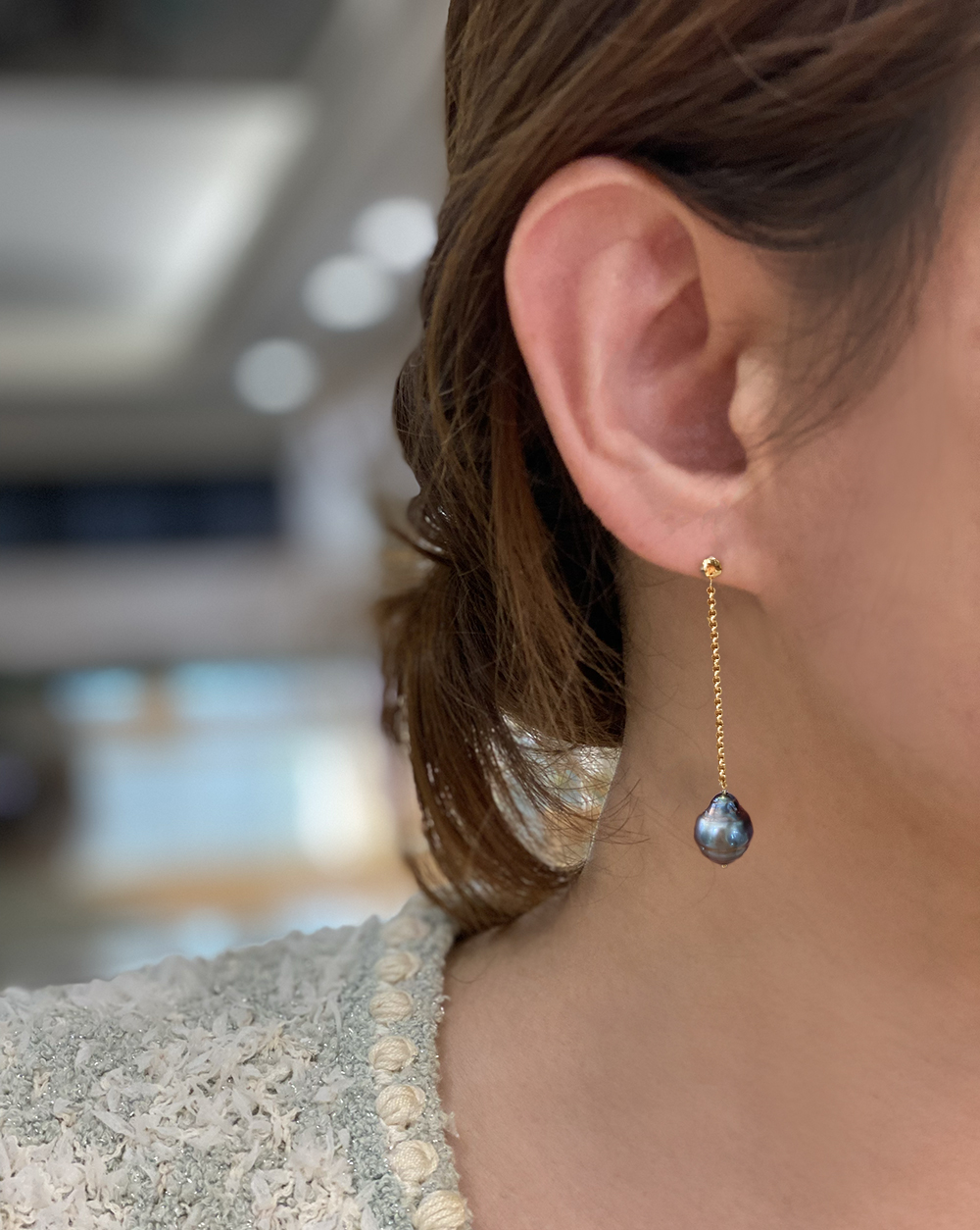 新作 BONBON PEARL【HANDMADE】K18YG 黒蝶バロックパール ボンボンパール ピアス ピーコックドロップ