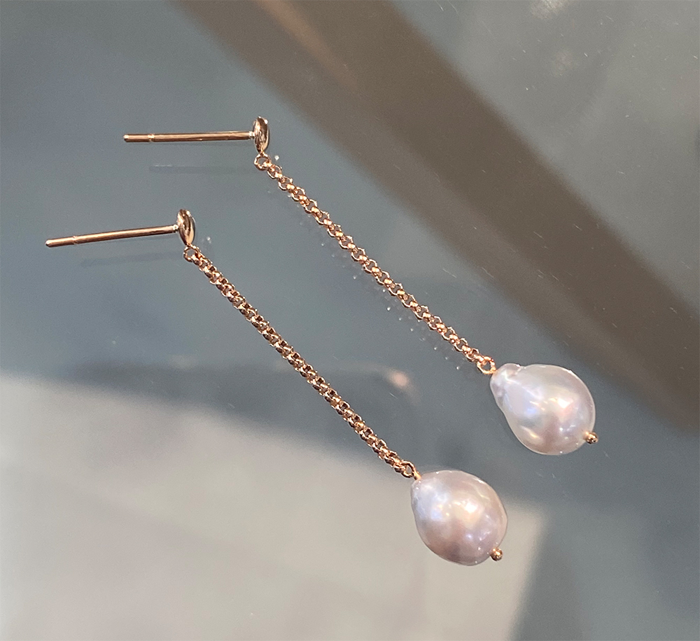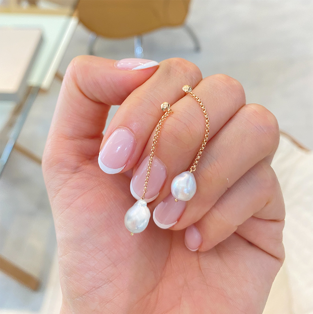新作 BONBON PEARL【HANDMADE】K18PG 白蝶バロックパール 7×9.5mm/7.2×9mmピアス ホワイトドロップ