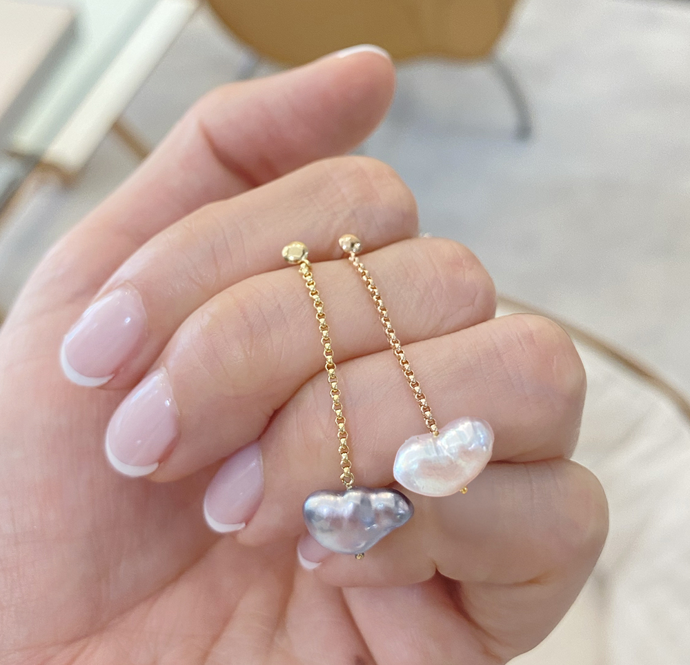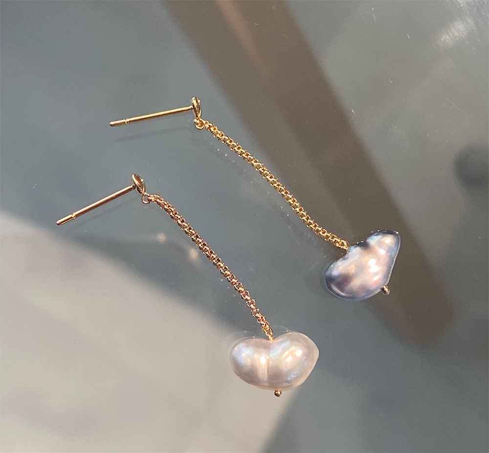 新作 BONBON PEARL【HANDMADE】K18PG/K18YG 白蝶バロックパール ピアス KUMO DROPS