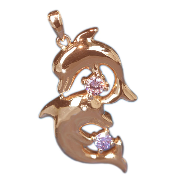 【HANAMADE】K18PG ピンクダイヤモンドFANCY PURPLISH PINK VS2 0.037ct/FANCY LIGHT PINK SI1 0.05ct ペントップ いるか[中央宝石研究所]
