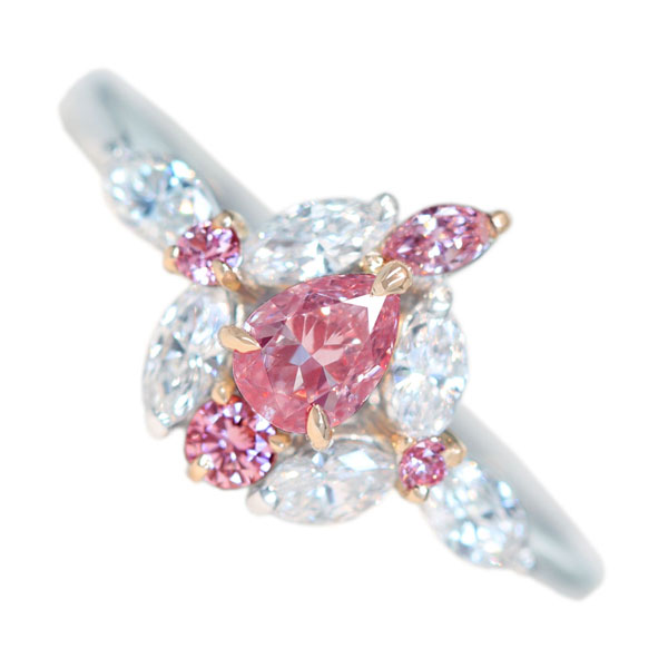《100年引き継がれるジュエリーを- ハンドメイドジュエリー展》限定価格!【HANDMADE】Pt950/K18PG ピンクダイヤモンド FANCY ORANGY PINK 0.285ct FANCY INTENSE PURPLISH PINK 0.016ct FANCY PINK 0.033ct FANCY PURPLISH PINK 0.012ct 0.053ct ダイヤモンド 0.408ct リング[中央宝石研究所/AGTジェムラボラトリー/DGL]