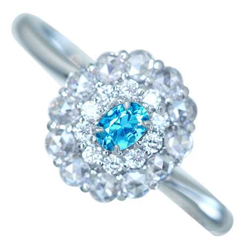 【HANDMADE】PT950 ブラジル産パライバトルマリン ダイヤモンド リング ローズカットダイヤモンド