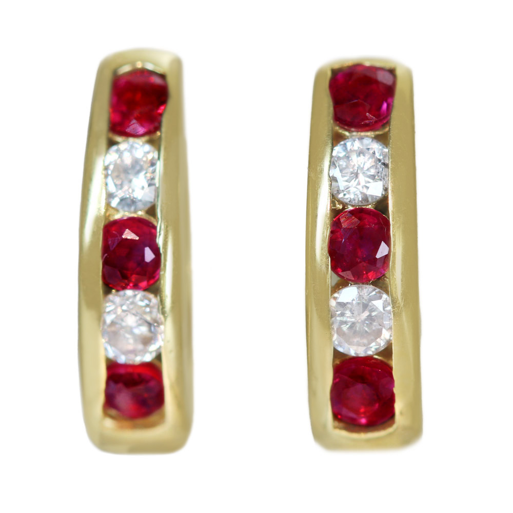 K18YG ルビー ダイヤモンド ピアス フープピアス