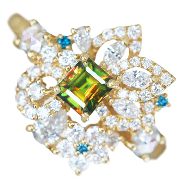 【代行販売】K18YG スフェーン 0.60ct ダイヤモンド 0.81ct リング