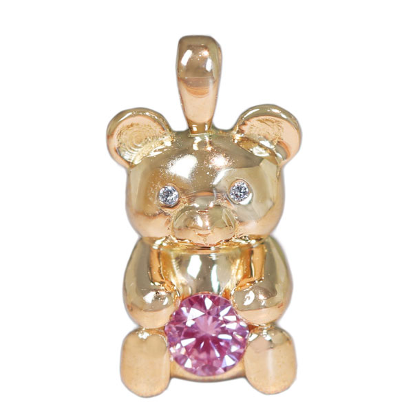 【HANDMADE】K18PG 天然ピンクダイヤモンド FANCY PURPLISH PINK VS2 0.089ct!! ダイヤモンド ペンダントトップ くま[中央宝石研究所]