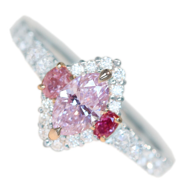 《100年引き継がれるジュエリーを- ハンドメイドジュエリー展》特別価格 PINK DIAMOND PLANET【HANDMADE】PT950/K18PG パープルダイヤモンド FANCY LIGHT PINK PURPLE SI2 0.479ct ピンクダイヤモンド FANCY VIVID PURPLISH PINK SI1 0.052ct FANCY LIGHT PINK SI1 0.091ct ダイヤモンド 0.393ct リング マーキス[中央宝石研究所]