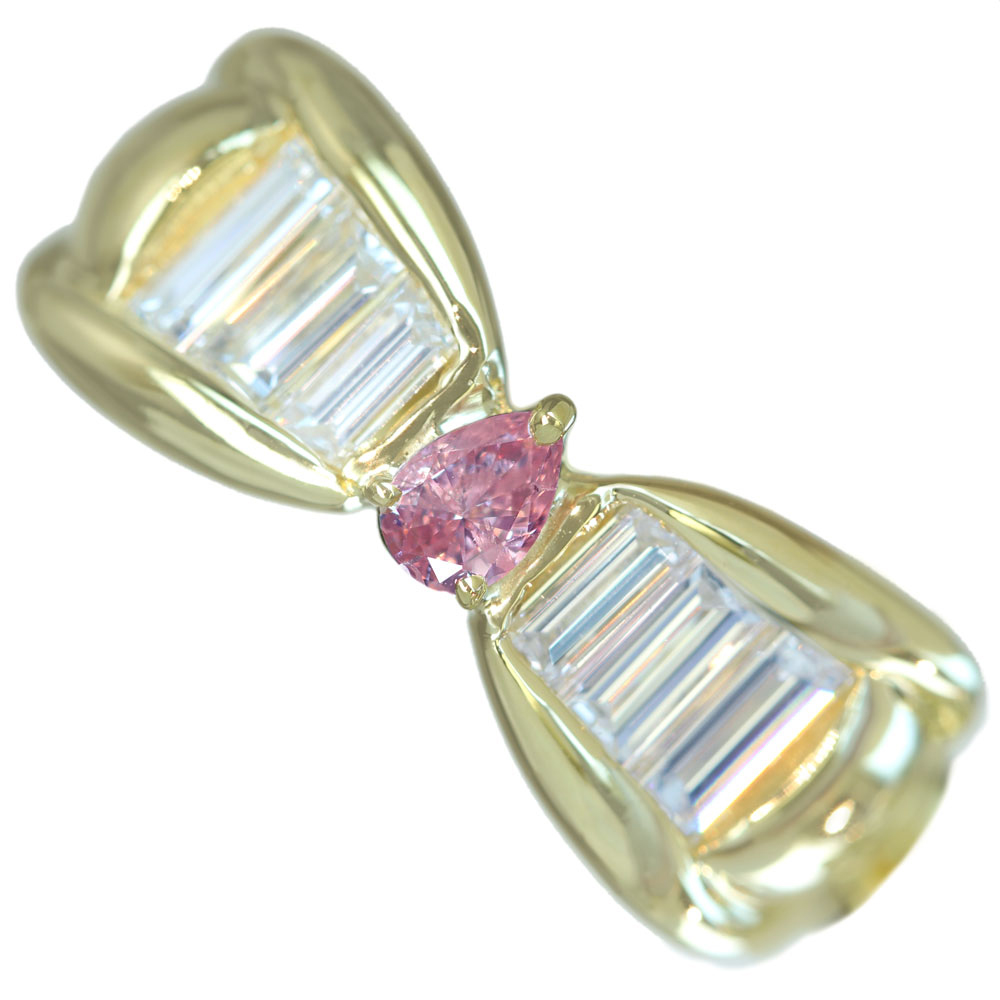 K18YG ピンクダイヤモンド 0.195ct FANCY PINK ダイヤモンド 1.00ct リング ペアシェイプ[中央宝石研究所]