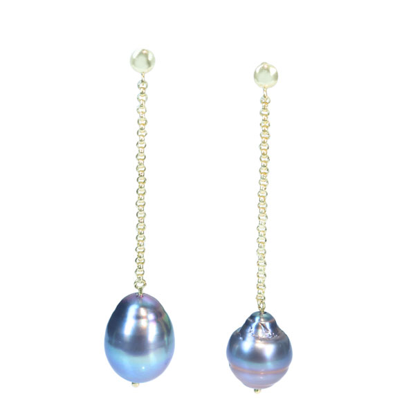 新作 BONBON PEARL【HANDMADE】K18YG 黒蝶バロックパール ボンボンパール ピアス ピーコックドロップ