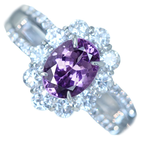 PT900 パープルスピネル 1.23ct ダイヤモンド 0.69ct リング