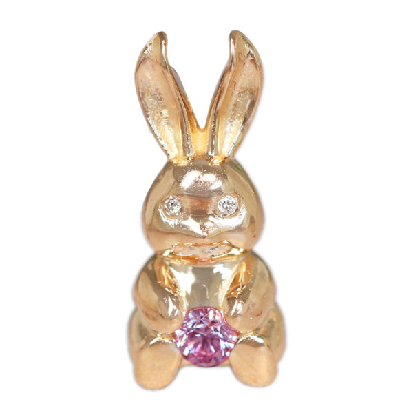 【HANDMADE】K18PG 天然ピンクダイヤモンド FANCY LIGHT PURPLISH PINK SI1 ダイヤモンド ペンダントトップ うさぎ[中央宝石研究所]