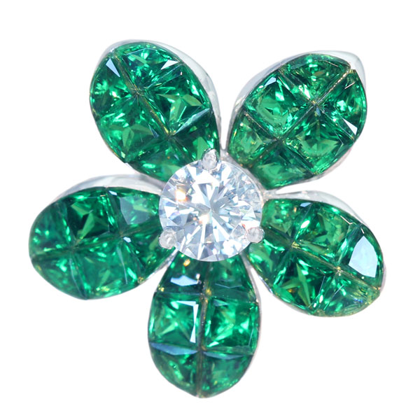 【HANDMADE】PT950/K18PG 天然ピンクダイヤモンド 0.234ct コロンビア産エメラルド 0.581ct リング フラワーモチーフ[中央宝石研究所]