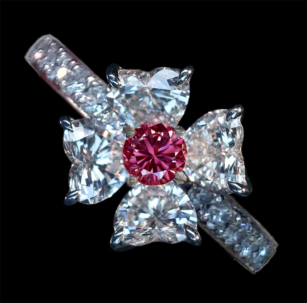 《100年引き継がれるジュエリーを ハンドメイドジュエリー展》完売! HANDMADE】PT950 K18PG ピンクダイヤモンド FANCY INTENSE PINK SI-1 ダイヤモンド 0.766ct リングハートシェイプ[CGL]
