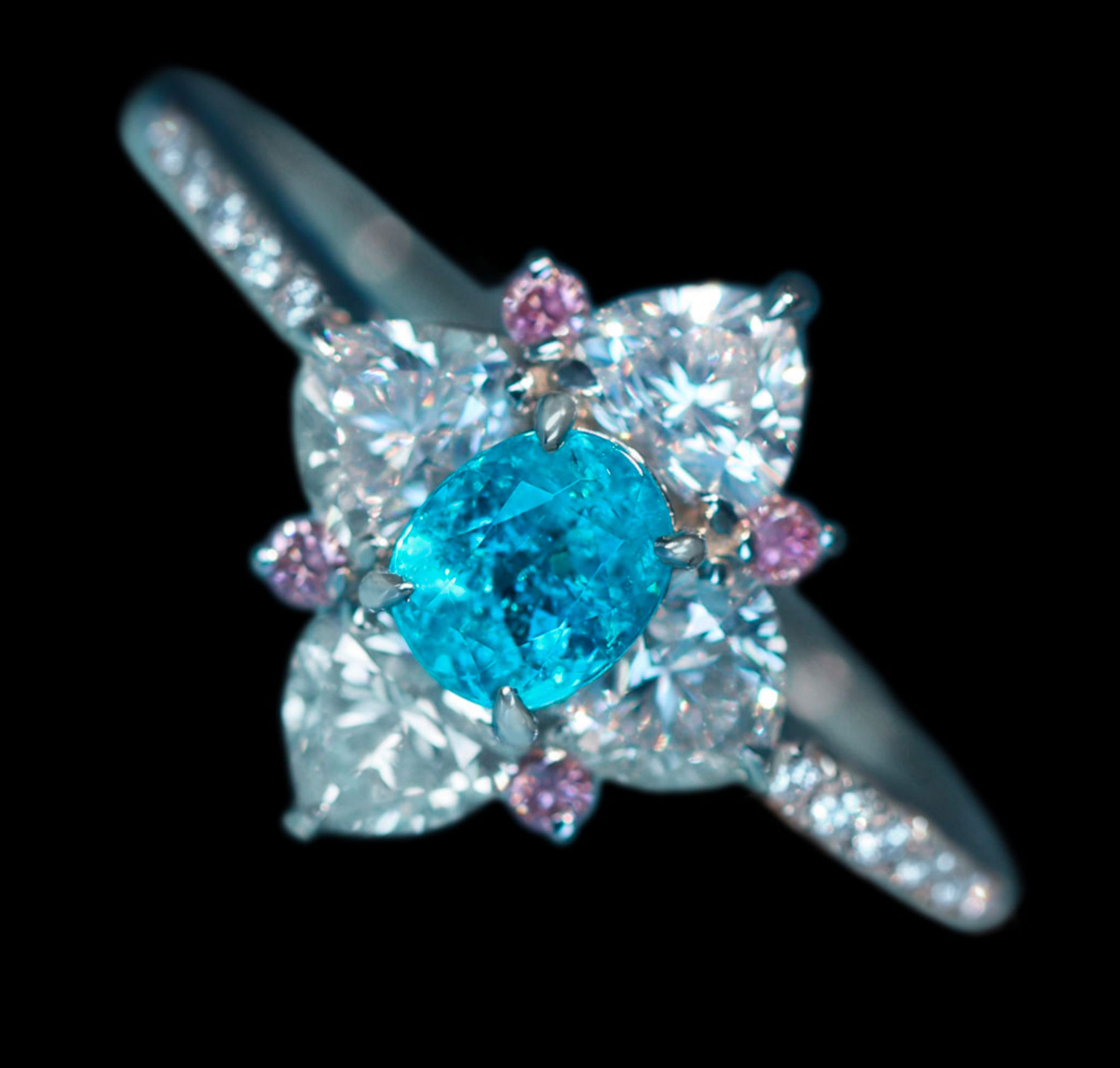 《100年引き継がれるジュエリーを- ハンドメイドジュエリー展》特別価格!【HANDMADE】PT950 パライバトルマリン 0.264ct グリーンダイヤモンド 0.097ct ピンクダイヤモンド 0.052ct ダイヤモンド 0.59ct リング