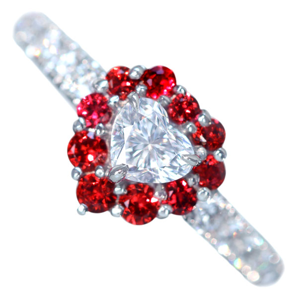 《100年引き継がれるジュエリーを- ハンドメイドジュエリー展》【HANDMADE】PT950 TYPE2A ダイヤモンド ハートシェイプ 0.325ct D VVS1 レッドスピネル 0.32ct ダイヤモンド 0.357ct リング[GIA/中央宝石研究所]
