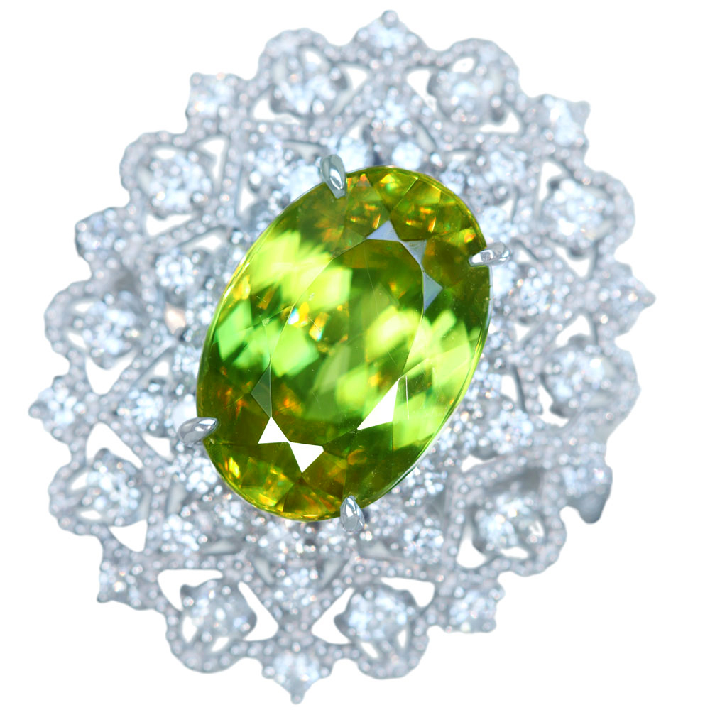 PT950 スフェーン 4.51ct ダイヤモンド 1.04ct リング