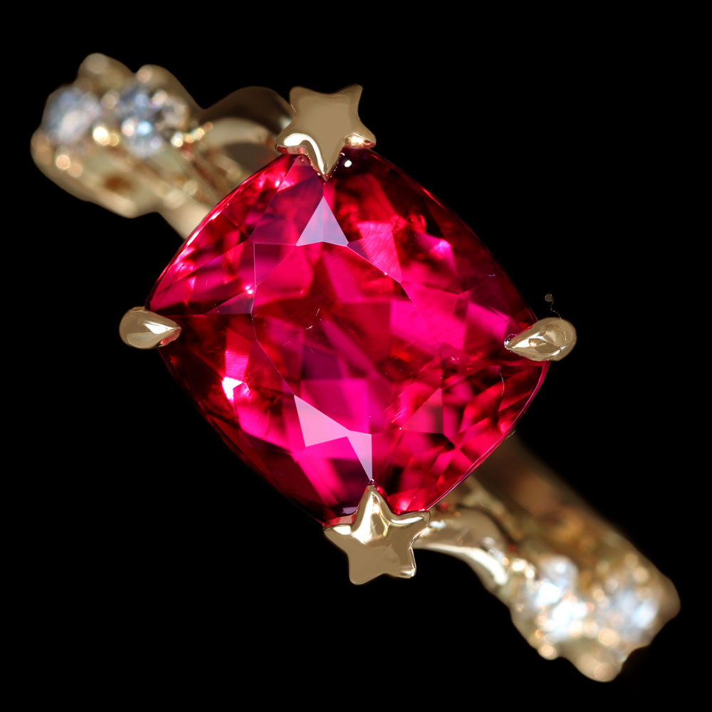 【HANDMADE】K18PG ルベライト 3.43ct ダイヤモンド 0.215ct リング スター