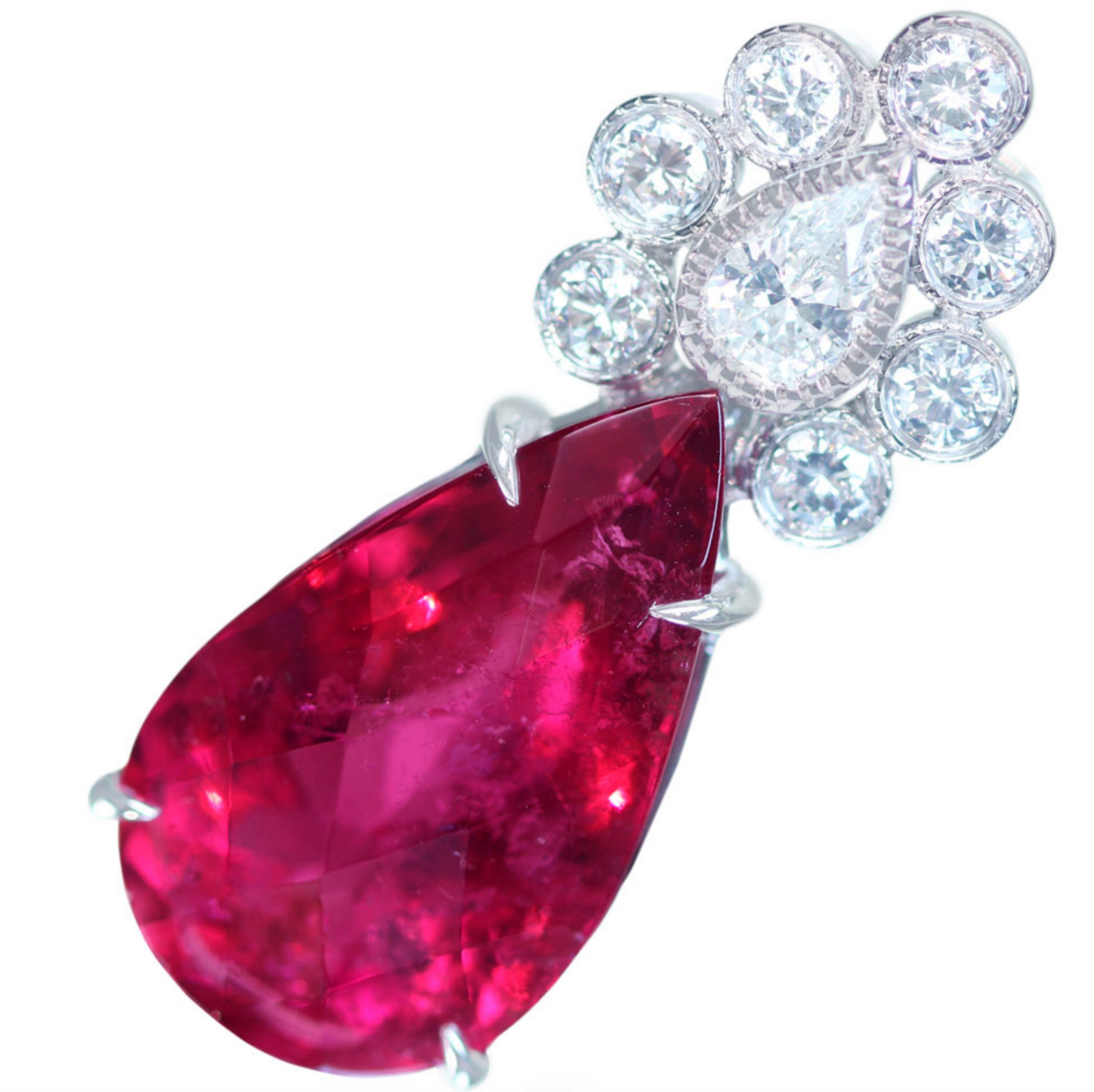 7キャラットオーバー!K18WG ルベライト 7.078ct ダイヤモンド 0.56ct ペンダント