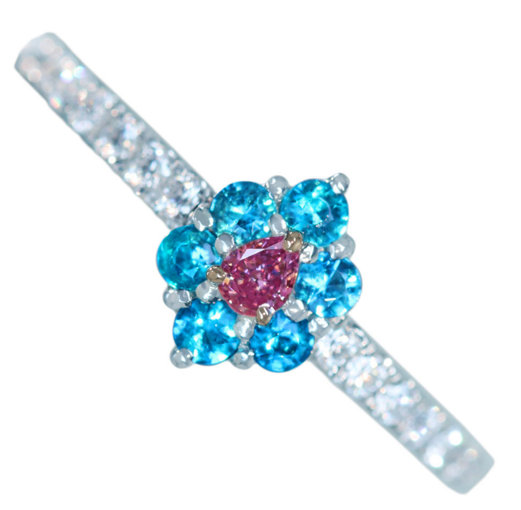 《100年引き継がれるジュエリーを- ハンドメイドジュエリー展》【HANDMADE】 PT950/K18 ブラジル産パライバトルマリン ピンクダイヤモンド FANCY PINK ダイヤモンド リング