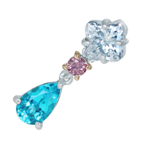 【HANDMADE】PT950/K18PG ブラジル産パライバトルマリン 0.21ct ピンクダイヤモンド FANCY INTENSE PURPLISH PINK I1 0.027ct ダイヤモンド G VS-2 0.309ct リリーカットダイヤモンド ペンダントトップ[中央宝石研究所/AGT]