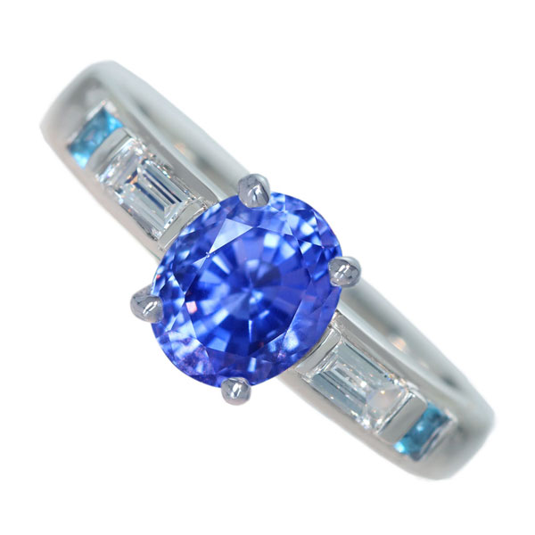 《100年引き継がれるジュエリーを- ハンドメイドジュエリー展》【HANDMADE】PT950 非加熱ロイヤルブルーサファイア 5.03ct パライバトルマリン 0.958ct ダイヤモンド 0.749ct リング[GIA/GRS]