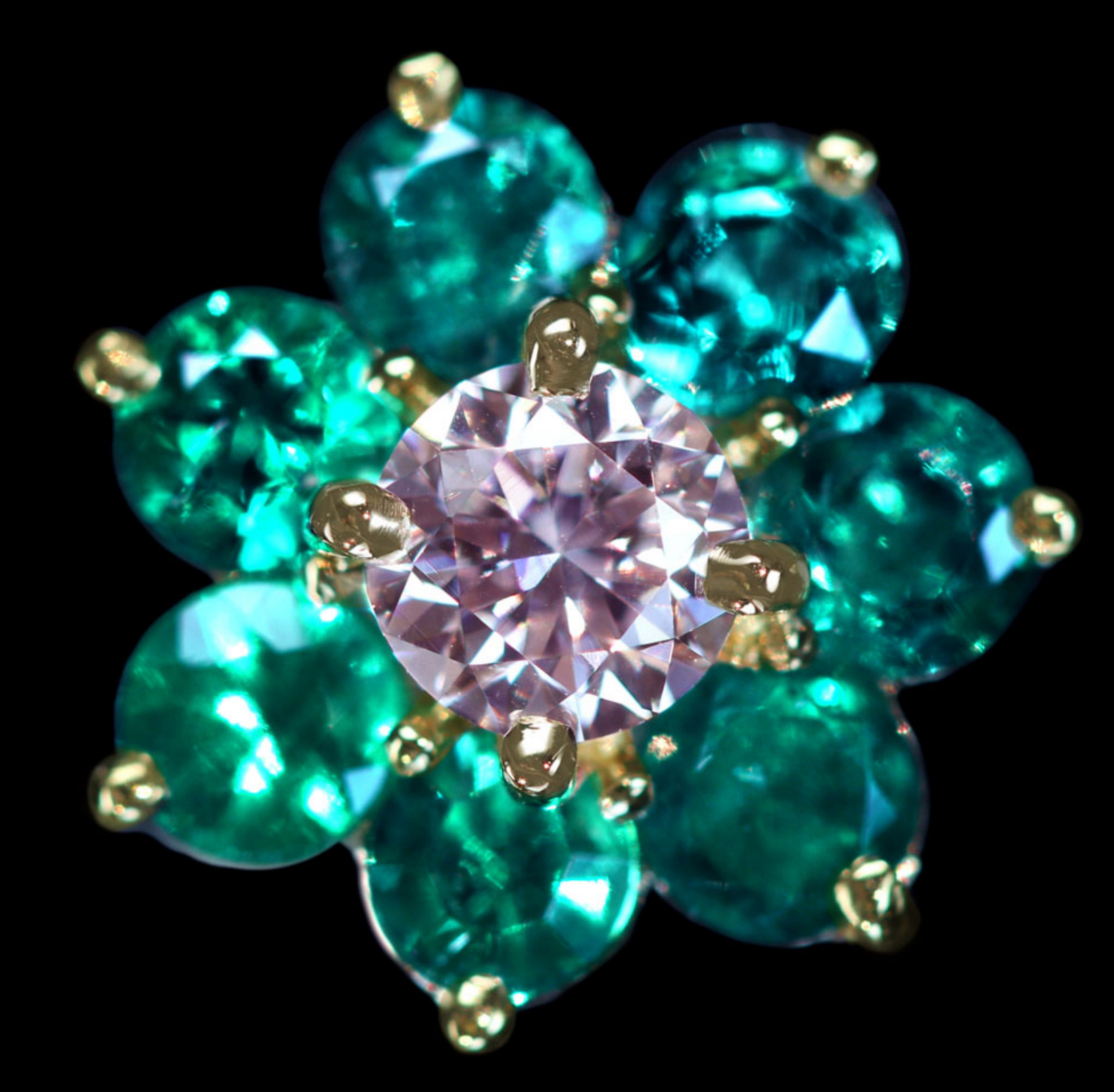 【HANDMADE】PT950/K18YG 天然ピンクダイヤモンド 0.217ct コロンビア産エメラルド 0.577ct ペンダントトップ フラワーモチーフ[中央宝石研究所]