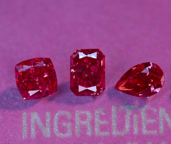 ナチュラルカラーダイヤモンドのラフ。これらは非常に稀少。