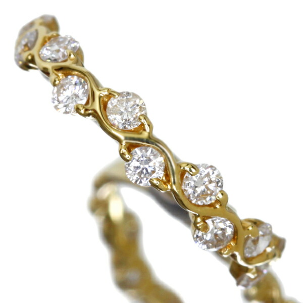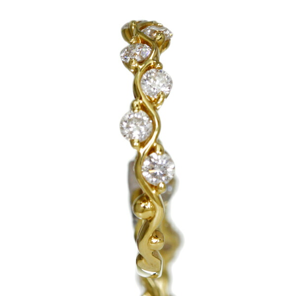 波打つK18ゴールドの曲線に、交互に配されたダイヤモンドは1ピースあたり直径約2mm。