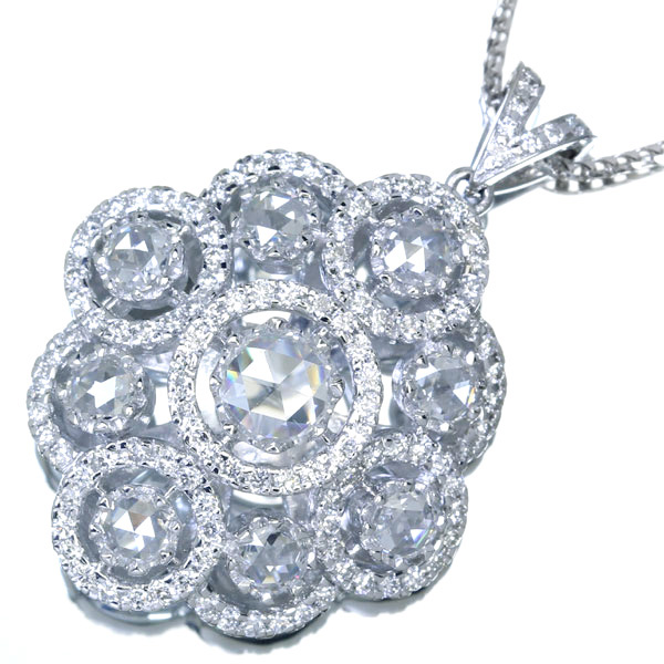 K18WG total 2.17ct ローズカットダイヤモンド ネックレス
