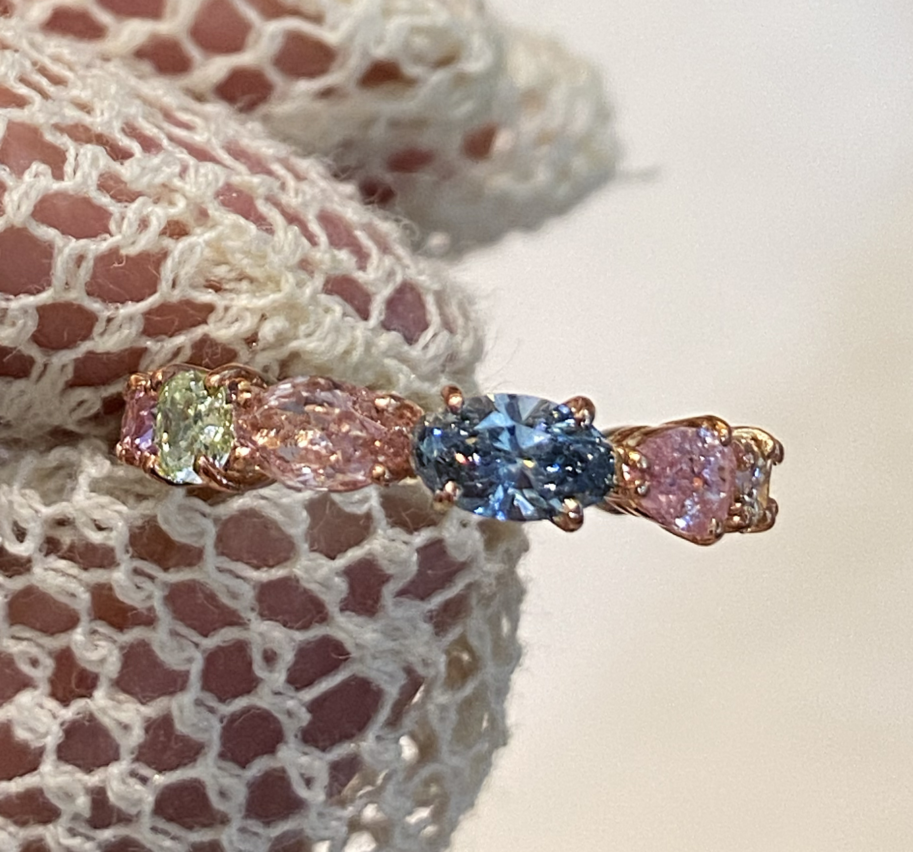 《100年引き継がれるジュエリーを-ハンドメイドジュエリー展》【HANDMADE】PT950/K18PG ピンクダイヤモンド 0.135ct/0.205ct/0.100ct/0.314ct/0.055ct/0.087ct パープルダイヤモンド 0.120ct/0.048ct イエローダイヤモンド 0.070ct/0.089ct/0.184ct/0.097ct/0.114ct/0.127ct/0.125ct グレーダイヤモンド 0.306ct レインボーエタニティー リング[中央宝石研究所/AGT]