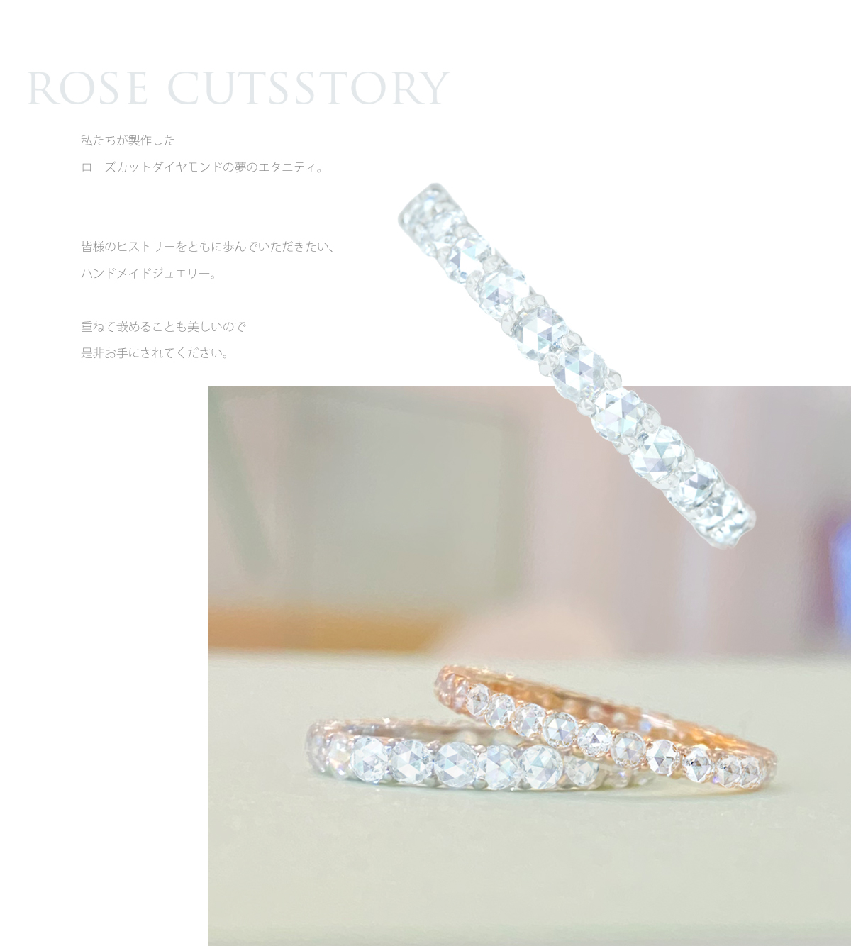 【HANDMADE】K18PG ダイヤモンド 0.538ct ローズカット フルエタニティデザイン