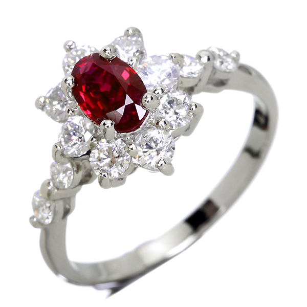 PT900 0.58ctビルマ産非加熱ピジョンブラッドルビーリング 0.76ctダイヤモンド